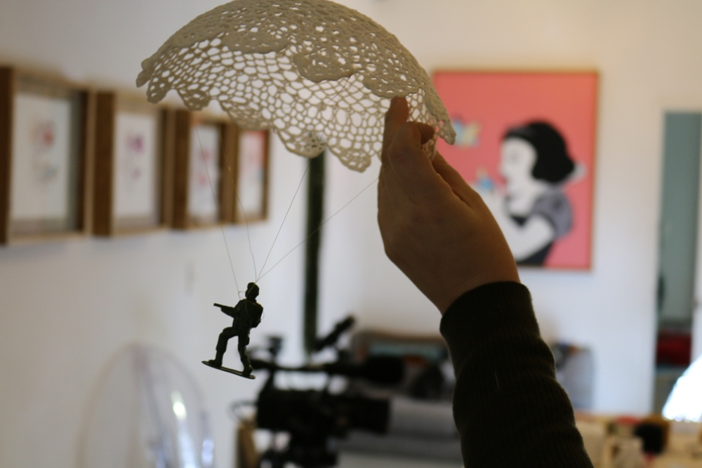 Veronique Cote: No way it’s 100% original. Art does not happen in a vacuum and if it does then it is probably a bad art most of the time. It’s really rare that art doesn’t inspire itself. My art is strongly inspired by popular culture and basically it looks at cultural moldings so the way we teach children and people how to behave in our society using narratives. It’s a Disney like juxtaposition between innocence and violence, between happy and very dark. That’s the idea, a mix of maybe traditionalism with warmongering culture. A well intentioned, well-meaning culture, but still kind of scary. It’s to me a metaphoric of the United States or my experience of North America in general where we are very well-intentioned, but very wondrous, very Disney, but also very scary. Where a culture that is attractive and that seems happy and lovely and full of flowers and colors and yet we are very, very violent sometimes with good intention, sometimes just cyclically violent and always in some kind of innocent way. It’s never our fault. It’s always other people. And I think that’s what I’m kind of doing at this moment. I’m using some popular culture, some movies, some stories, and some fairytales. So from those tales, from those movies, from those literatures we teach people how to belong to a culture. So, yeah I definitely 100% pull from culture, pop culture and literary culture and everything that I can find of.