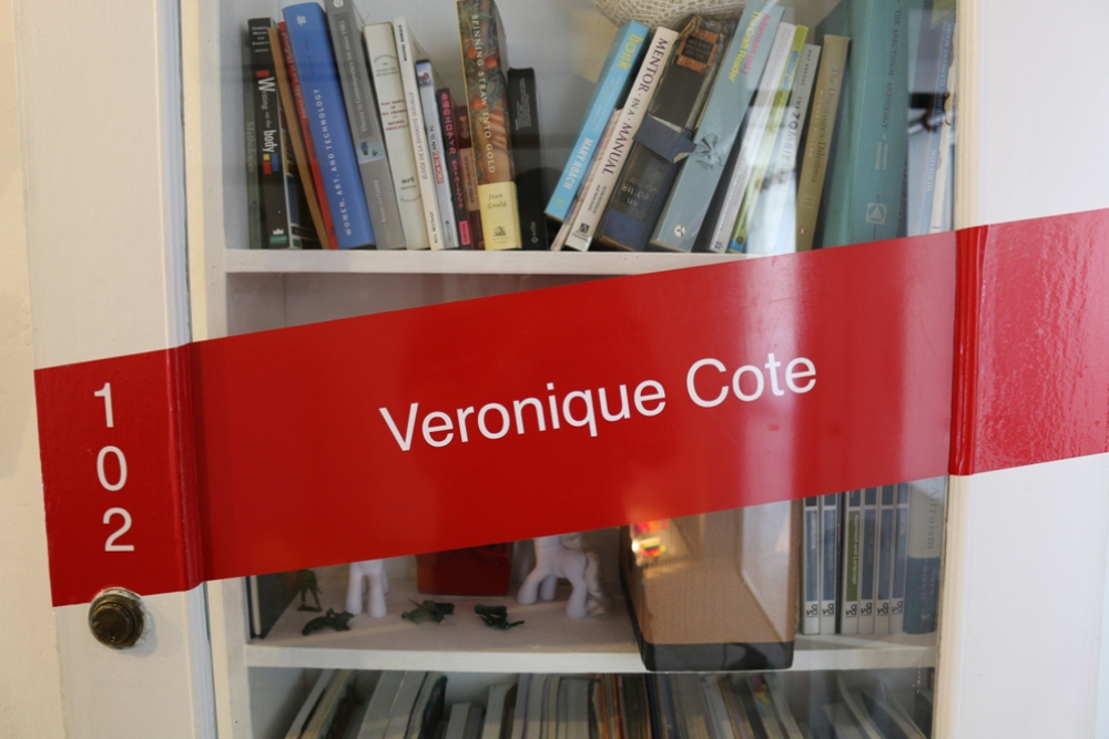 Veronique Cote: I am very rarely satisfied with my work most of the time. You’re in the my studio right now so there are things I’m working on and then there are things that are on my wall, because I need to learn to love them or hate them. There are things that end up in the trash and there are things that I kind of learned to love or like.