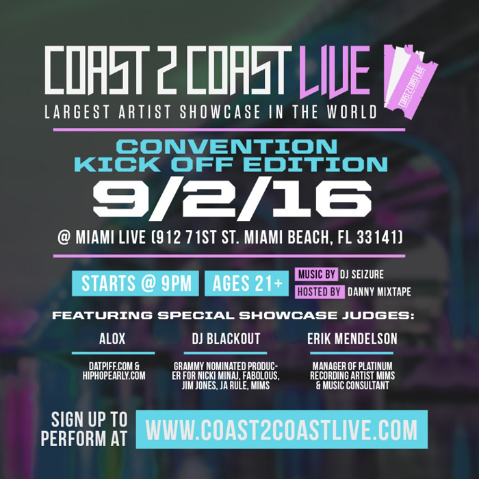 The convention begins on September 3rd and goes throughout September 5th. The 2016 panels include; What’s Your Plan, Who’s On Your Team, Panel, What’s Your Budget, Panel, Main Event Artist Showcase, Coast 2 Coast Official After Party, Preparing For The Studio Panel, Branding & Marketing Panel, Networking & Relationships Panel, Feature Capsule-Lifetime In Music, Convention Finale Showcase any many more.