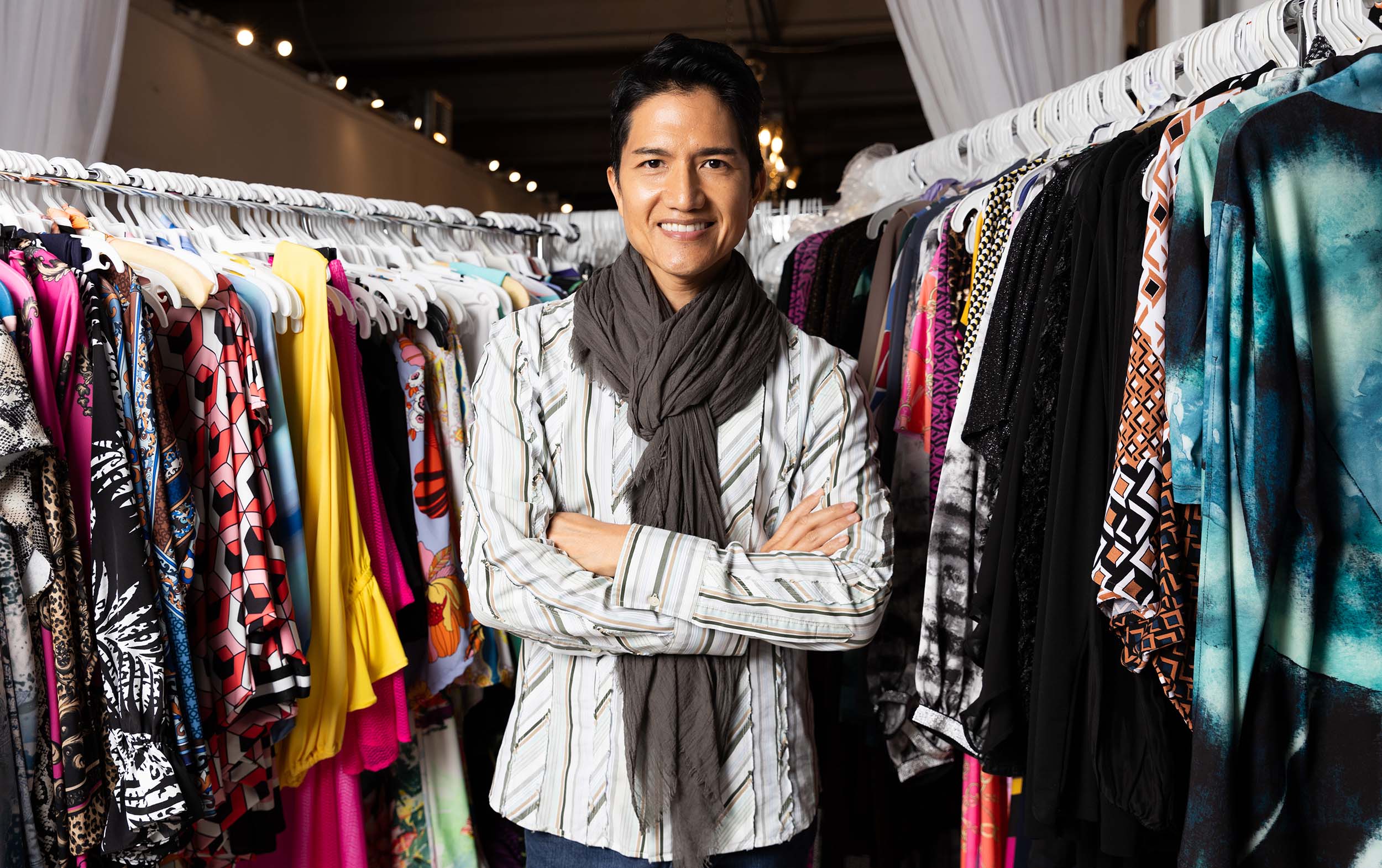 When I was young and growing up in Lima, Peru, my mother was a seamstress. It fascinated me to watch her turn pieces of fabric into beautiful dresses. Then my sister became a model, and she took me to some of her fashion shows. I was hooked. I was most taken by bright colors and patterns and continue to design around those concepts today